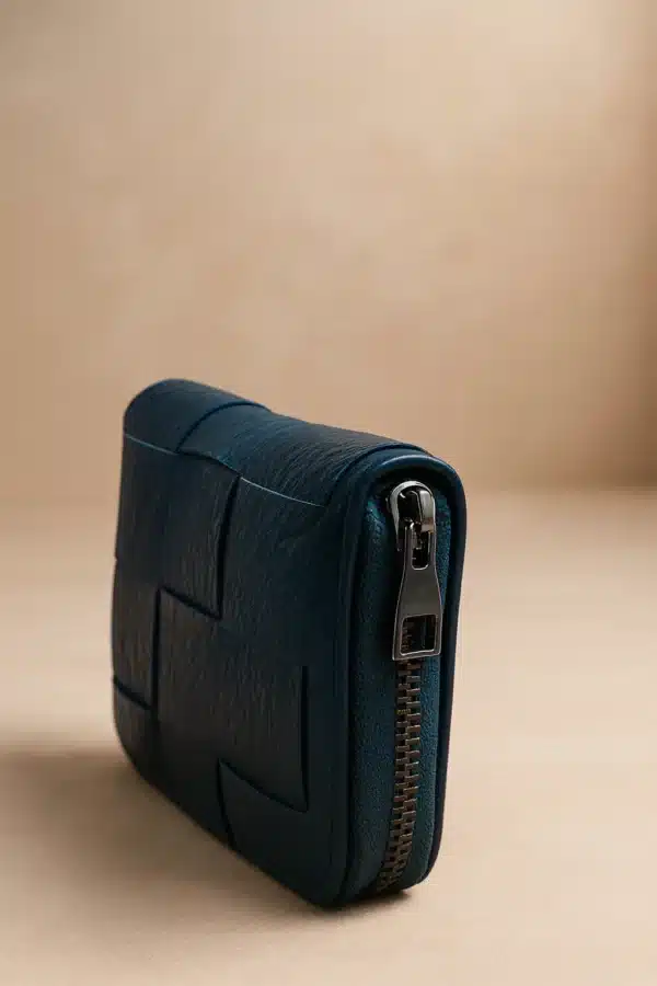 The woven texture adds a touch of sophistication, while the smooth zip closure keeps your essentials safe and organized. Inside, you’ll find multiple card slots, a coin compartment, and space for folded bills — all within a sleek silhouette that fits comfortably in your hand or pocket.
